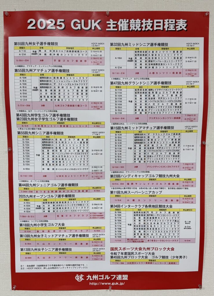まだまだ寒い3月初旬ですがいよいよゴルフの競技もスタートします。先日、練習場で九州ゴルフ連盟のポスターを見かけました。アマチュアゴルフでも数多くの試合が開催されますがこのポスターの競技は全国大会につながる公式戦と言われる試合で競技ゴルフファーにとっては大事な試合です。出場する選手の方はしっかり調整して頑張って下さいね!
