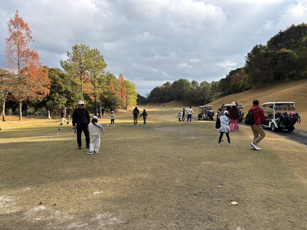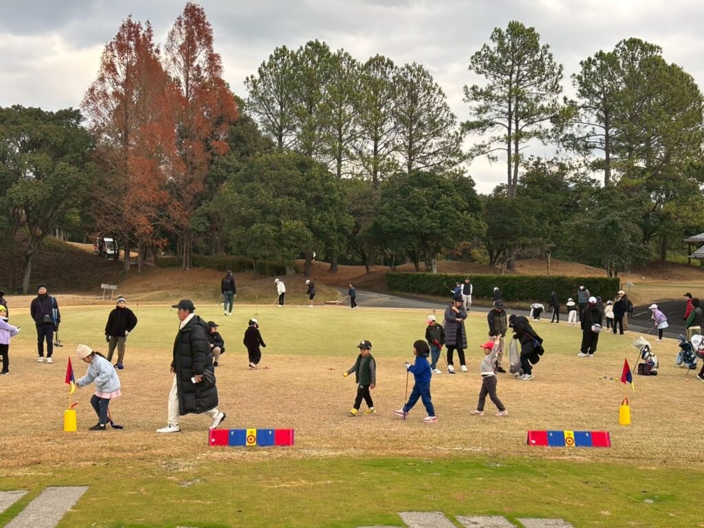 2025年12月14日熊本県熊本市南区城南町の熊本ゴルフ倶楽部城南コースにて熊本ゴルファーズクラブ主催、熊本ゴルフ倶楽部協力でキッズゴルフ場体験会が開催されました。ゴルフ経験の無い子や小さな子たちはスナッグゴルフを使ってコースを回り途中で恒例の松ぼっくり拾いタイムを経て笑顔でラウンド終了! 子供たちも頑張りましたが保護者の皆様もお疲れ様でした。
