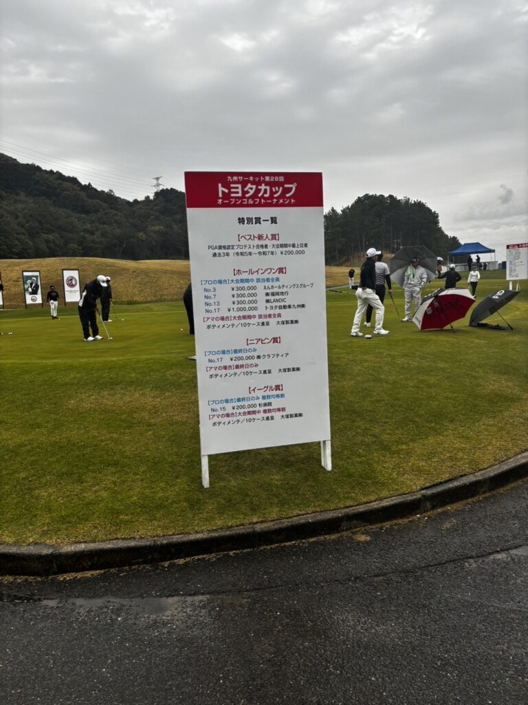 2026年4月9・10日福岡県宮若市のザ・クラシックゴルフ倶楽部で九州サーキット第28回トヨタカップオープンゴルフトーナメントが開催され6ホールのプレーオフを制し和田章太郎プロが優勝を飾りました。この大会はアマチュアでも参加でき本戦ではプロと一緒の組でラウンドしプロのショットをまじかで見ながらのラウンドが出来ます。本戦出場には予選会を突破しなければいけませんが是非チャレンジしてみて下さい。